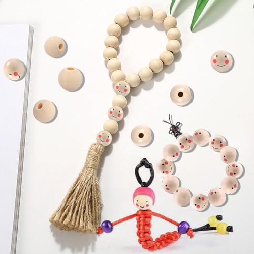 【FACILE DA USARE】: le perline di legno con faccina sorridente hanno un foro di 5 mm/10mm, si possono facilmente infilare insieme, si possono colorare e scarabocchiare per creare oggetti personalizzati.