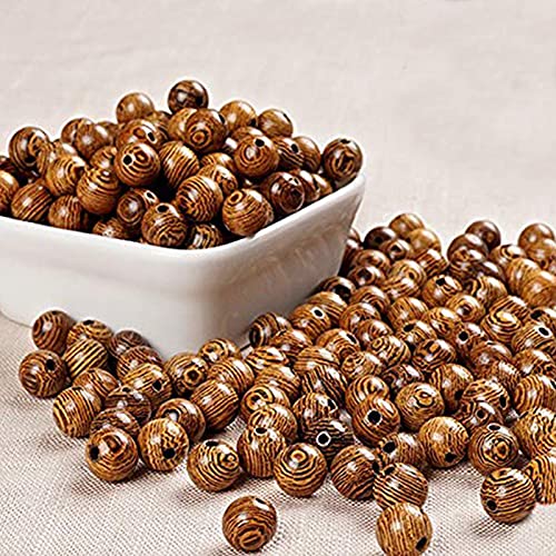 DAHI 600 pezzi Perline in Legno 8 mm Perline Rotonde Perline in Mogano Perline in Legno Strutturato per Bracciali e Collane Fai da te
