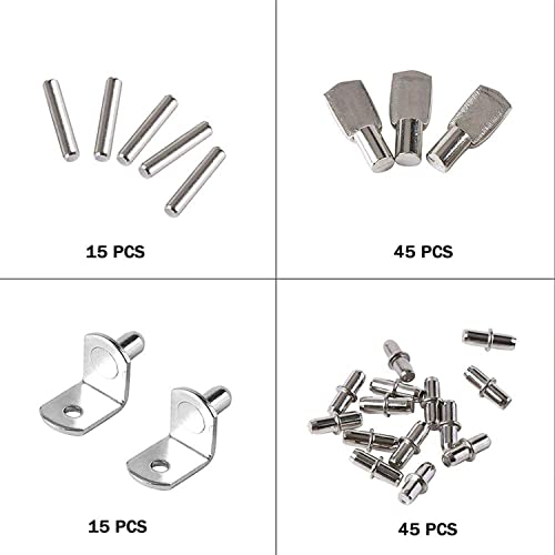 120 Pezzi Perni per Mensole Supporto, 4 Stili Supporti Per Mensole in Metallo Nichelato, Staffa di Fissaggio ad Angolo Retto con Vite, per Mobili, Armadi, Librerie, Scaffali