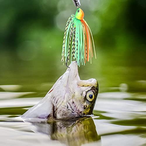 【Pesca efficace】Ogni modello da pesca ha un gancio a manovella affilato. Il gancio metallico affilato e pesante è resistente e può penetrare rapidamente e impedire al pesce di staccarsi. La gonna in silicone ha colori misti vivaci, morbidi e resistenti agli strappi. I colori vivaci misti sono adatti a molte occasioni.La perfetta attrezzatura da pesca può catturare persico, trota, salmone, carpa e testa di serpente.