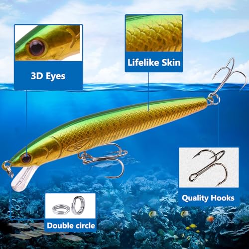 【Regalo perfetto】 Il set di esche da pesca è disponibile in diversi colori e dimensioni, qualsiasi pescatore appassionato apprezzerebbe questo kit di esche! È un grande regalo per il pescatore.