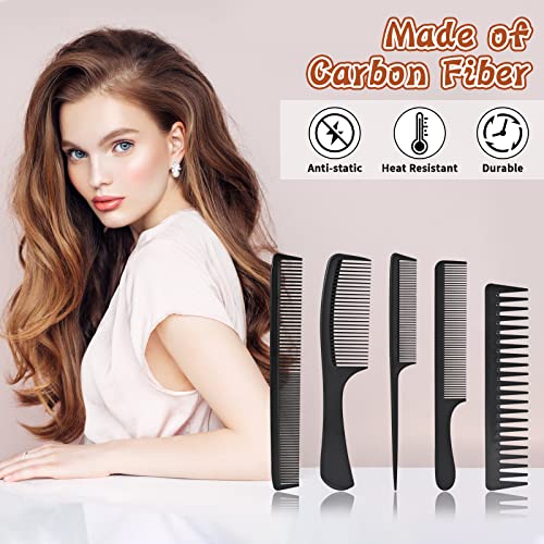 5 Pezzi Pettine Capelli,Pettine a Denti Larghi,Pettini Barbiere,Pettine Barba,Carbonio Fibra Barbiere Pettine per Salone Parrucchiere Uso Domestico per Uomini e Donne