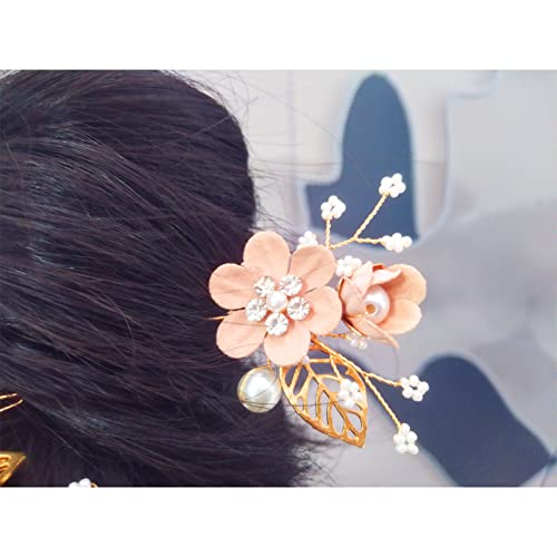 Design del prodotto: gli accessori per capelli da sposa sono realizzati con fiori rosa artigianali, fiori delicati e decorati con strass e perle che sembrano eleganti e nobili.