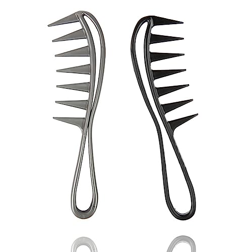 2 Pezzi Pettine Denti Larghi, Pettini per capelli, Pettine Largo, Pettine per acconciature, Pettine per arricciare, Pettine per acconciature retrò, Antistatico, Strumenti per capelli (Nero + Grigio)