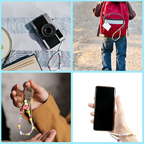 AIEX 6 Pezzi Phone Charm Perline, Cordino per Telefono Colorati Fatto a Mano Cinturini da Polso per Telefono Carino Lettere Frutta Occhi Malvagi Fiori Perlata Perline Portachiavi per Ragazze Donne