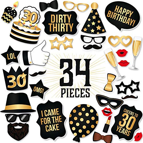 34 Pezzi Photo Booth Compleanno,30 Anni Photo Booth Accessori,Set di Oggetti Scena per Foto di Compleanno,Fai Da Te Photo Booth Puntelli Kit,per Selfie per Donne Uomini Feste di Compleanno