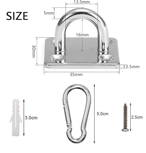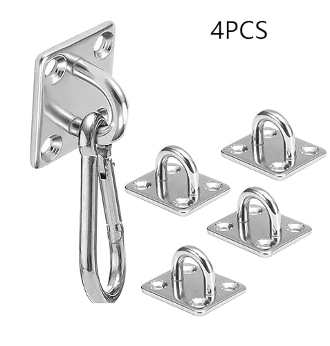 Srup 4 Pezzi M5 Piastra con Occhiello, M5 Placca Occhiello e Moschettone, Piastra di Copertura in Acciaio Inossidabile, con Vite, per l'Installazione del Soffitto Dell'Amaca
