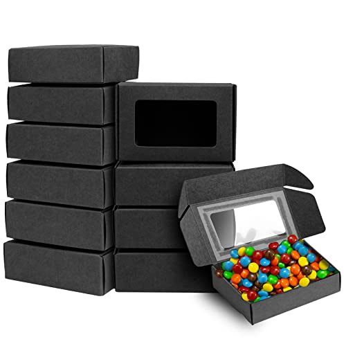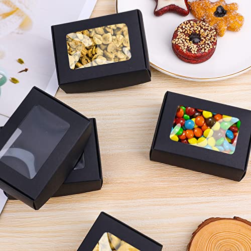 AIEX 30 Pezzi Piccole Scatole Cartone, Piccolo Nero Cartone Scatola Favore Bulk con Finestra Trasparente Coperchio per Caramelle Panificio Imballaggio Artigianato (nero)