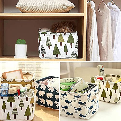 4 Pezzi Piccoli Cestini Portaoggetti Tessuto, Scatola Portaoggetti Tessuto Cotone Lino, Scatola Immagazzinaggio Organizer, Mini Pieghevoli Quadrati Impermeabile Contenitore per Bambini,Giocattoli
