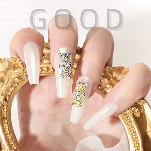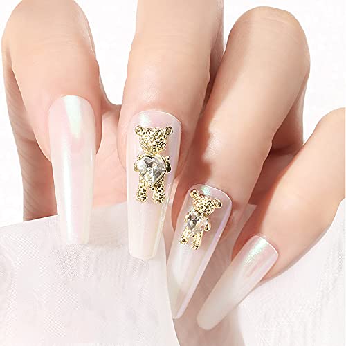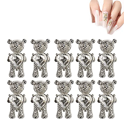 10 pezzi piccolo orso decorazione per nail art 3D metallo oro argento colorato gioielli per unghie charm cristallo accessori per donne e ragazze
