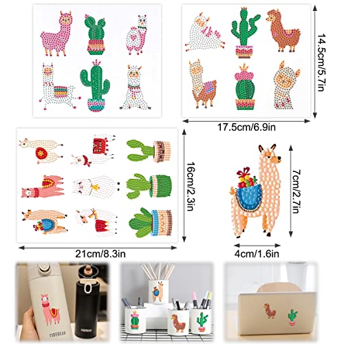DGN 21 Pezzi Piccolo Diamond Painting Bambini Alpaca e Cactus,DIY Animali Diamond Painting Kit Pittura Bambini,5D Mosaici Per Bambini,Mosaico Stickers Pittura Diamante Bambini Painting Diamante
