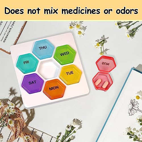 [Materiale plastico sano]: il nostro piccolo portapillole da 7 giorni è realizzato in materiale PP alimentare, non tossico e innocuo, privo di BPA, ben sigillato e resistente all'umidità, puoi usarlo con sicurezza per conservare il tuo medicina quotidiana.