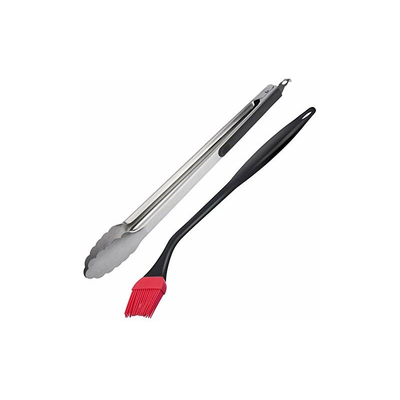 Westmark Set da 2 pezzi con pinza per barbecue con manici gommati e pennello per arrosto e grill con piega, acciaio inossidabile/plastica/silicone, argento/nero/rosso 151622E6 43,0 x 8,0 x 6,5