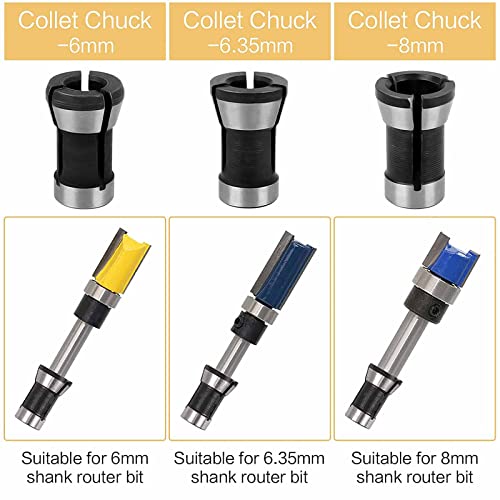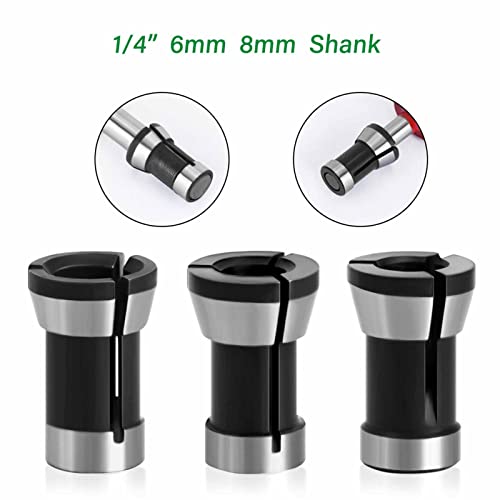 【3 modelli】: il set contiene un totale di 6 pezzi di mandrini di serraggio, suddivisi in tre dimensioni: 6 mm, 6,35 mm e 8 mm, 2 pezzi per ogni dimensione. I modelli ricchi possono soddisfare le vostre varie esigenze.