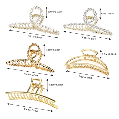 5 Pezzi Pinze per Capelli in Metallo, Grande Mollettoni Artiglio per Capelli in Oro, Accessori per Donne Spessi Parrucchieri, Antiscivolo Fermagli per Capelli per Donne e Ragazze Capelli Spessi