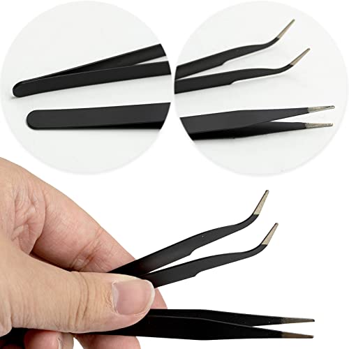 [ Ottimo materiale] - le pinzette sono in acciaio inossidabile di alta qualità e il retro della pinzetta diritta viene fornito con un kit antiscivolo. Non si piega e non arrugginisce, perfetto per l'uso quotidiano.