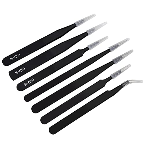 7 Pezzi Pinzette Antistatico ESD, Pinzetta Elettronica di professionali Precisi Pinzette Industriali in Acciaio Inossidabile per riparazione elettronica, creazione di gioielli, industria