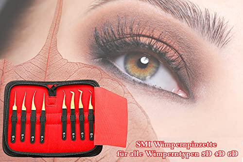 SMI 8 pezzi Kit Pinzette per ciglia volume punta curvo e dritto, Pinzette per extension ciglia professionali, Ciglia finte, 3D-6D, Pinzette di precisione acciaio inossidabile (Oro Nero)