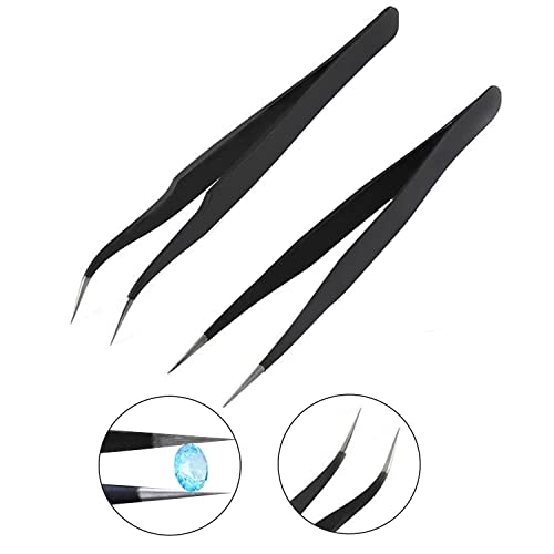 2 Pezzi Pinzette di Precisione, Set di Pinzette Industriali Pinzette Antistatiche in Acciaio Inossidabile, Pinzette Elettronica per Riparazione Elettronica, Restauro di Gioielli, Laboratorio