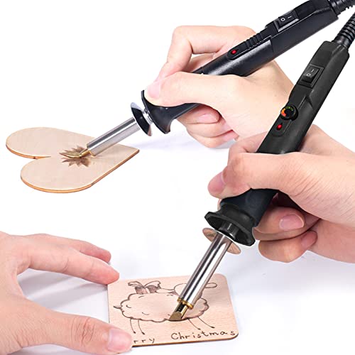 TEMPERATURA REGOLABILE: Kit pirografico regolabile con la manopola di regolazione della temperatura, è possibile regolare la temperatura della pirografia nell'intervallo 220-480 gradi, questa saldatura a legno soddisfa le esigenze di incisione in diversi materiali
