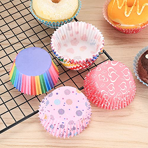 【Custodia da forno di dimensioni standard】 La nostra carta per muffin può impedire che il colore sbiadisca dopo la cottura. Le dimensioni di 5 * 6,8 * 3,2 cm (in basso * in alto * altezza), 100 di ogni stile possono soddisfare le tue esigenze per grandi feste.