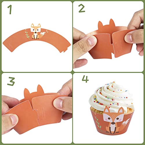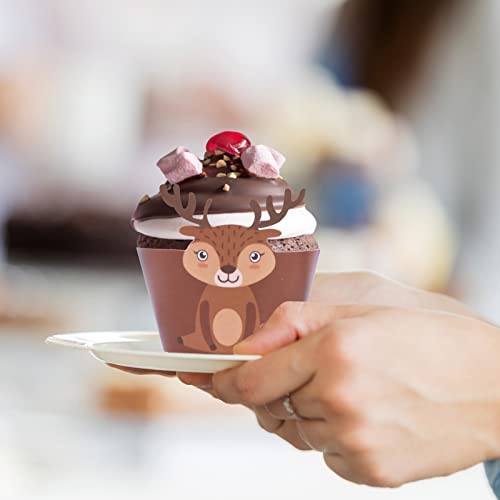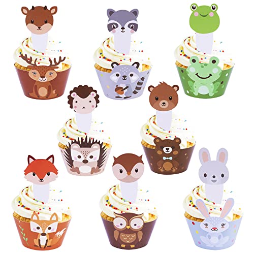 【Design Unico】Involucri cupcake involucri con animali della foresta con volpe orso alce gufo riccio coniglio coniglio elementi rana stampa trasparente decorazioni per torte per ragazze ragazzi