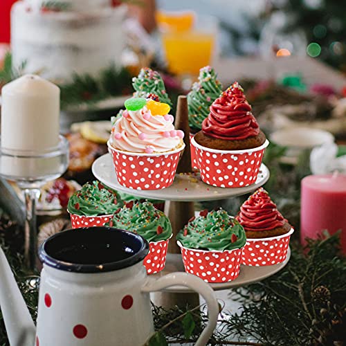 50 Pezzi Pirottini Cupcake, Cupcake Carta, Carta per Muffin, Pirottini per Muffin e Cupcake, Pirottini per Muffin Metallici per Halloween, Compleanni, Matrimoni (Punto d'onda) (Rosso)