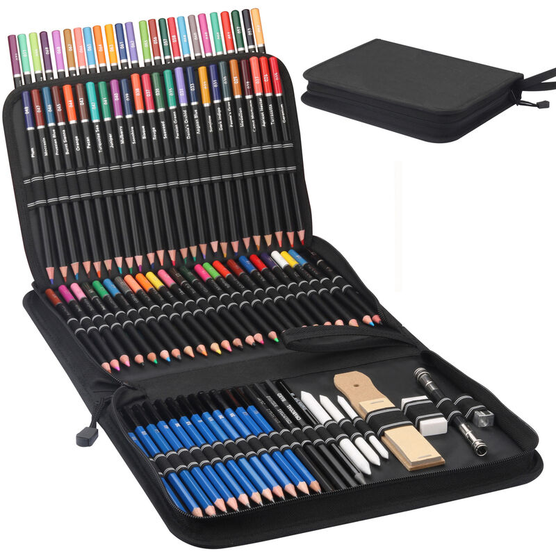 95 pezzi Schizzo Set di pittura a matita colorata Set di schizzi per pittura artistica Pittura a mano Colore ad olio Piombo, puoi soddisfare le tue esigenze nella creazione di schizzi. > Rispettoso dell'ambiente e non tossico - La materia prima della matita è fatto di legno grezzo. Dopo il test TUV, la matita è innocua per il corpo umano, quindi anche i bambini possono utilizzare questo set di matite senza preoccuparsi di eventuali danni. Mina durevole: la nostra mina è molto resistente e durevole, facile da scrivi, taglia e cancella e le linee della matita sono molto lisce, non facili da spezzare, non è necessario tagliare ripetutamente la matita. Leggero: questo kit per disegnare e disegnare può essere facilmente inserito nel tuo borsa da scuola, occupa meno spazio e puoi portarla ovunque tu voglia attingere dalla natura. Il regalo perfetto per tutti: che tu sia un amante dell'arte, uno studente, un principiante della pittura o un professionista pittore, il set di matite da disegno
