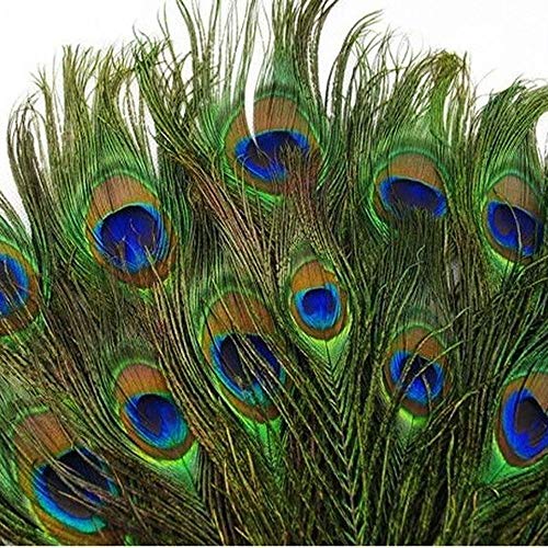 WHK 10 Pezzi di Piume d'occhio di Pavone Naturali, bellissime Piume d'occhio di Coda Verde per Vestiti, Decalcomanie, Bouquet, Feste di Matrimonio