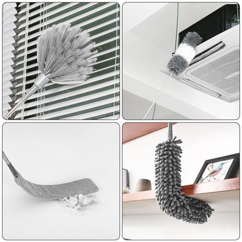 MATERIALE DI ALTA QUALITÀ Lo spolverino telescopico è realizzato in microfibra e ciniglia, con una straordinaria capacità di aspirazione, la polvere ha un cappuccio in gomma sulla parte superiore per che non graffi i vostri mobili, il divano o la superficie della parete durante la pulizia, il palo telescopico in acciaio inossidabile ha una lunga e non è facile da arrugginire, puoi facilmente pulire ogni angolo della tua casa.