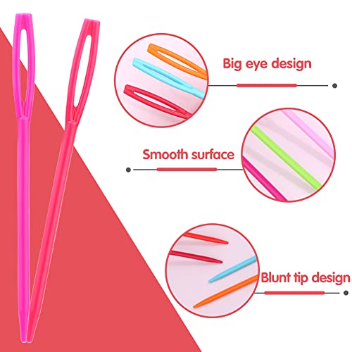 Materiale di alta qualità: gli aghi da cucito sono realizzati in plastica, sicuri, lisci, pratici, solidi, inodori, non facili da rompere, è un buon strumento per l'apprendimento dell'ago per i bambini.