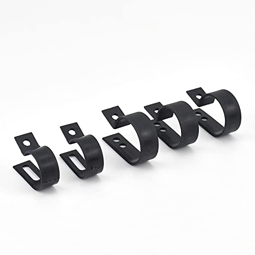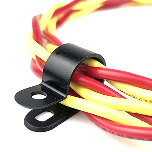 BIGP 200 Pezzi Clip di Filo di Plastica in Nylon Nero, P Clip di plastica in nylon, Elementi di fissaggio per conduit, cavi, tubi e manicotti Ø 5/6/9/12/19 /28mm