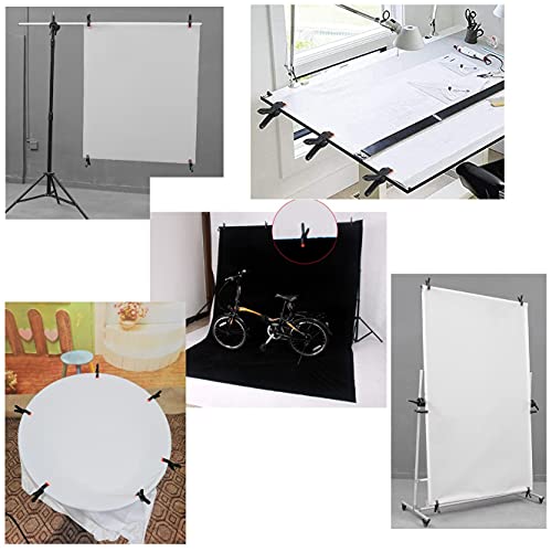 I morsetti a molla per sfondo sono realizzati in plastica resistente e resistente molla in acciaio ad alta resistenza, hanno una struttura stabile e un'elevata forza di bloccaggio, che può contenere saldamente gli oggetti. La molla sul morsetto è fissata con una vite per evitare che la molla si sciolga e cada.