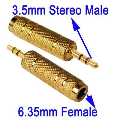 2x Pezzi Gold Plated 3.5mm Plug to 6.35mm Stereo Jack Adattatore Socket Adattatore