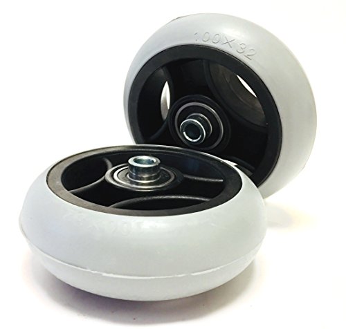 2 pezzi in pneumatici 100 X 32, colore grigio, con gomma, senza profilo,Trivellazione Per Cuscinetti a sfera 8 mm, Lunghezza 45 mm