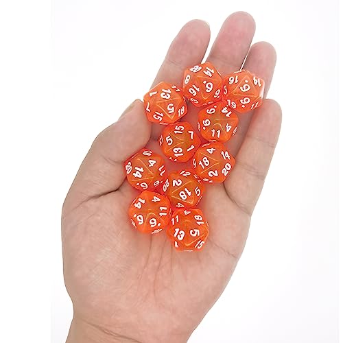 D20 Dadi, 10 Pezzi Poliedrici Trasparenti Dadi con 20 Facce per DND MTG Rpg Dungeons And Dragons Arancia Trasparente