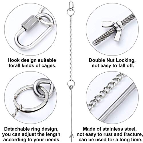Materiale resistente: la forchetta per verdure di pollo con catena è realizzata in acciaio inossidabile, lunga durata e facile da avvitare e rimuovere. Questo porta cibo per uccelli è progettato come spiedo con un gancio per appenderlo, può essere appeso facilmente.