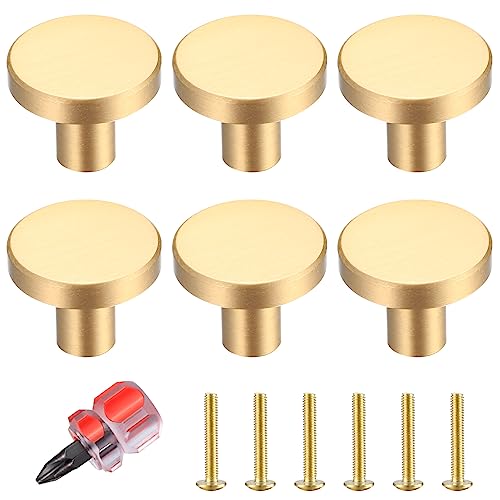 6 Pezzi Pomelli per Cassetti, Pomelli per Mobili Oro, Manopole Rotonde per Armadietti, Manopole per Cassetti in Ottone Dorato, Manopole Cucina per Porte per Decorazioni con Cacciavite - 20 * 25mm