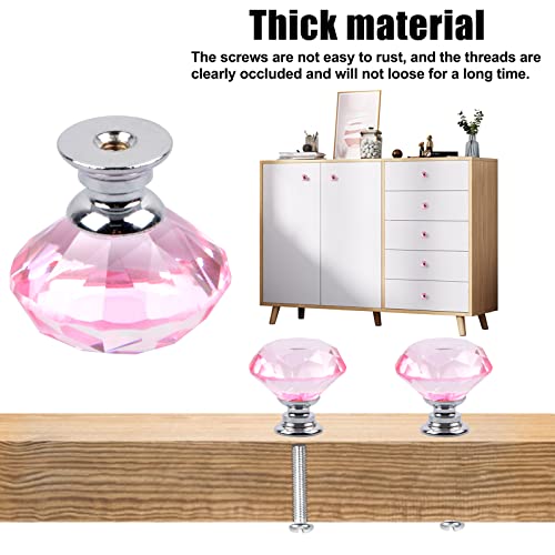 6 Pezzi Pomelli in Cristallo, 30mm Pomelli in Vetro Pomelli Manopole di Cristallo Pomelli per Cassetti, Pomelli per Porta Set Cassetto in Cristallo in Lega di Zinco Maniglia per Mobili con Vite (Rosa)