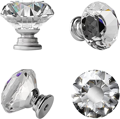 12 Pezzi Pomelli per Mobili,Manopole in Vetro Cristallo Trasparente con 12 Vite,(1-3/16'')Pomelli di Cassetto,Pomelli Cucina Manopole per porta, comò,Armadietti,Guardaroba,Design in lega di Zinco