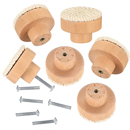 6 Pezzi Pomelli per Mobili in Rattan Legno, Manopole Rotonde per Porte, Pomelli Maniglie per Cassettiera, Cassetti in Legno, Armadi, Comodino, Cucina - Bianca