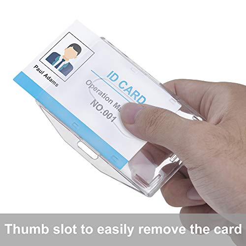 Porta badge chiuso in policarbonato extra robusto e cristallino con slot per pollice sul retro, per una facile rimozione della carta.