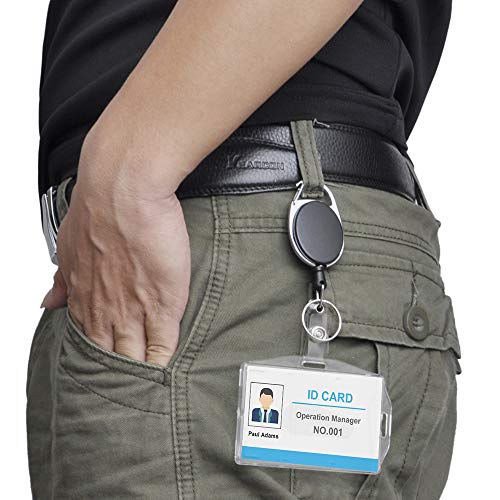 Alta qualità: la bobina per badge è un alloggiamento in metallo cromato con coperture in plastica resistente, clip per badge con moschettone che lo rende facile da fissare a passanti per cintura, zaino, borsa e altri oggetti, rendendolo una scelta perfetta per qualsiasi carta d'identità e badge.