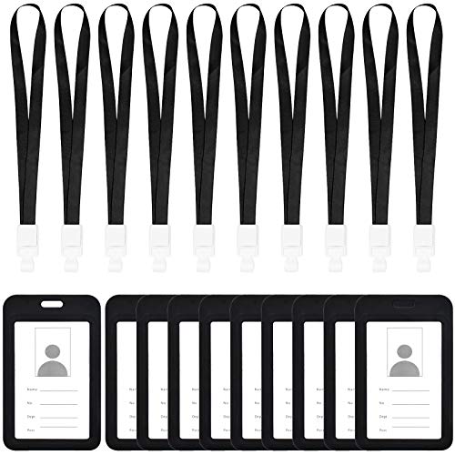 10 Pezzi Porta Badge Impermeabile, Plastica Porta ID Badge da Collo Verticale e Trasparente con Cordino, Porta-Badge da Collo per Mostra Aziendale Badge Pass per Tessere di Viaggio per Studenti