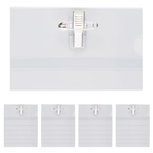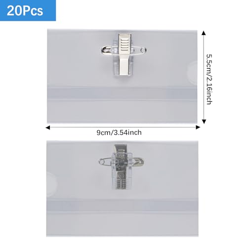 20 Pezzi Porta Badge in Plastica Trasparente, Badge Portanome con Clip e Spilla, Portabadge Impermeabile per Ufficio, Scuola, Conferenza (9x5.6 CM)