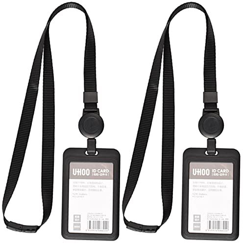 2 Pezzi Porta Badge Retrattile da Collo Id Carte Porta Badge in Pelle Pu Verticale Id Badge Card Holder in Pelle Lanyard con Porta Badge e Bobina Retrattile, per Carta Id, Scuola Id