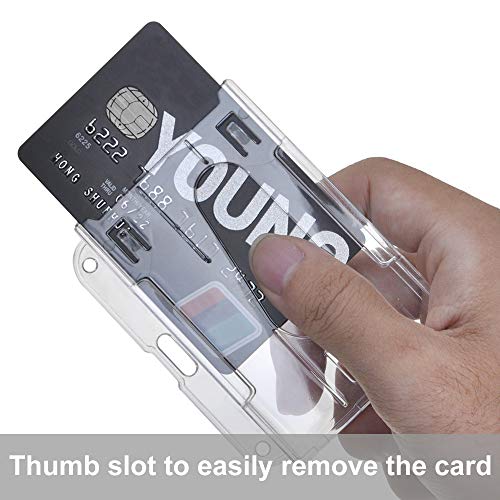 Rimuovi facilmente: Il porta tesserino rigida ha una fessura per il pollice per rimuovere facilmente la scheda e una clip di bloccaggio per fissarla in posizione.