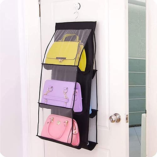 Risparmio di Spazio: l'organizer per borse sospese ha 6 tasche, la soluzione perfetta per risparmiare spazio, pellicola bifacciale e trasparente, facile da gestire le tue borse e trovare quella che desideri in qualsiasi momento.