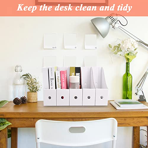 5 Pezzi Porta Cartelle Organizzatore per Riviste, Pieghevole Portariviste per Documenti Raccoglitore, Portariviste da Scrivania in Cartone per Ufficio Casa Archiviazione di File (Bianco)
