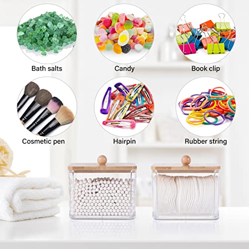 【Confezione da 2 dispenser per porta Qtip】- riceverai 2 contenitori quadrati impilabili in acrilico trasparente per il bagno con coperchio ed etichette. Etichette vuote che potresti scrivere da solo. Questo non solo ti aiuta a individuare facilmente gli oggetti, ma li mantiene puliti e igienici.